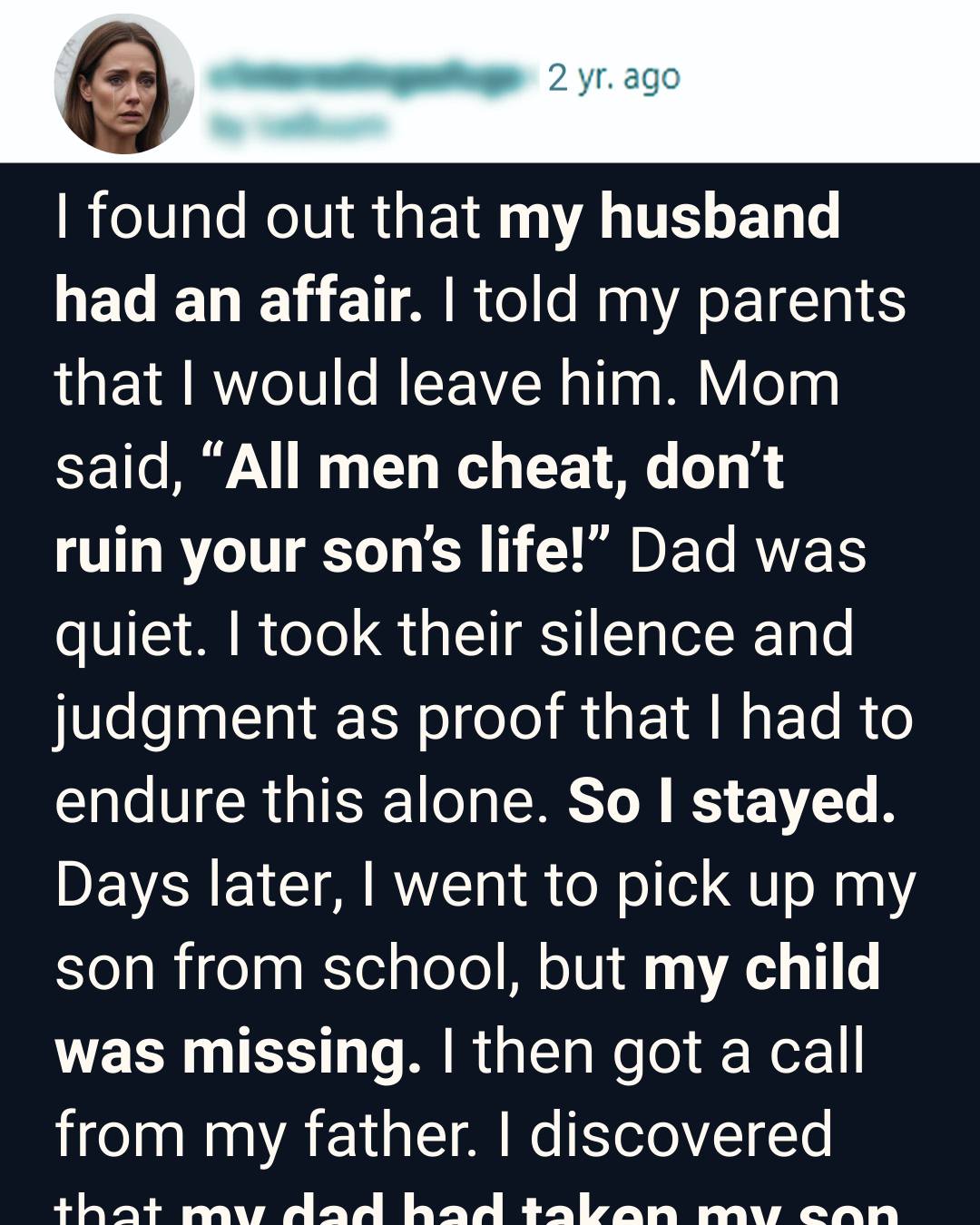 Instead, my mother sighed, put down her teacup, and said the words that cut deeper than my husband’s betrayal: “All men cheat. Don’t ruin your son’s life over something small.”