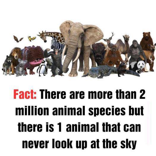 Pigs physically cannot look up to the sky because of the structure of their necks and spine. Their neck muscles and the alignment of their spine make it difficult — almost impossible — for them to tilt their heads upward enough to see the sky when standing.